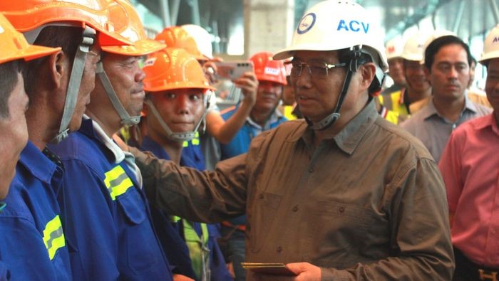 Tại công trường, Thủ tướng thị sát toàn bộ khu vực chính của nhà ga, gồm khu vực băng chuyền hành lý đã được lắp đặt. Thủ tướng cũng gặp gỡ, động viên, trao quà Tết cho kỹ sư, công nhân trên công trường.